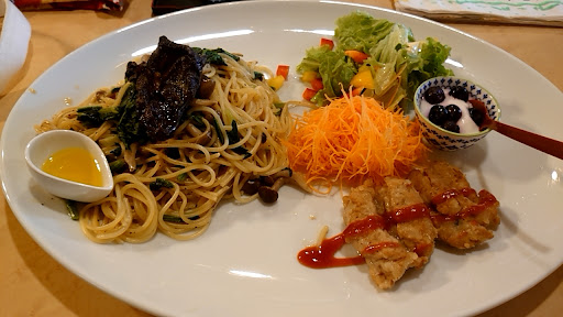 My family had lunch here after walking outside on a cold and rainy day. The lunch servings were very large, and all my family enjoyed the dishes (rice, udon, pasta and bread). There was also as much warm tea as we wanted. We were most surprised to get complimentary ice-cream! The owner was very gracious and hospitable. We must have stayed around two hours, and were never under any pressure to leave. All in all, a very pleasantly...