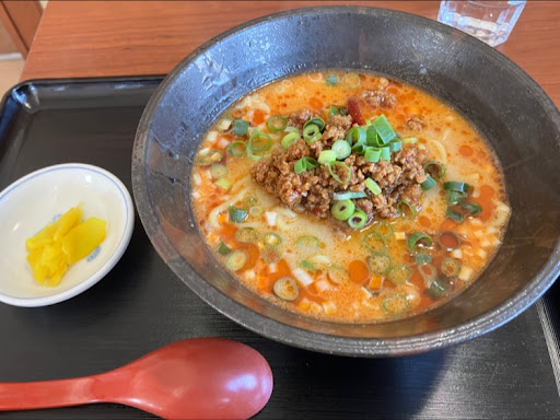 2022/5/2初訪問。 母に勧められ、初めてきました。 車は10台程、お店の前に駐められます。 店内に入るとまずは券売機があります。 店内が混んでいる場合は、最初に名簿に記名をお願いされますので、書いてください。 席の方は4人用のテーブル席2つ、カウンター席が8席あります。 看板商品は特製中華そばですが、私は辛いもの好きなので坦々麺を注文。 甘めの挽肉が沢山のっていて、卵のちぢれ麺の量は小柄な私にはちょうどいい量でした! 全体的にそこまで辛くはなかったのですが、可愛らしくのせてある唐辛子は食べたら痛いレベルですので、お気をつけください。でも私は癖になりそうでした(´꒳`)またリピートします! スープも濃厚で、平日のライス無料のライスとスープでさらに追坦々できます! うーん、美味しい。なので、また...
