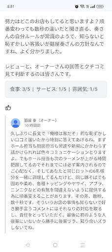 レビューと、オーナーさんの回答とクチコミ見て...