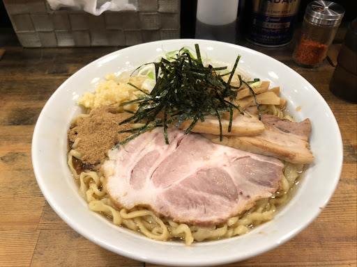 今回は土台となるカエシ、魚粉と甘めの煮干しのタレ、酢と辣油、ニンニクがうまく混ざり合ってとても美味しかった。通ってた時の味に戻ったようでとても嬉しい。 チャーシューもジューシーで味がした。 麺は手打ち麺か太麺を以前は選べたけど、今回は聞かれたなかった。選べなくなったのかな。 麺は以前、中太縮れ麺をよく選択していたがかなり薄めの平たい縮れ麺も混ざってきているようで、食感の違いや口当たりの変化は楽しめる。 薄いものはインスタントのうどんの麺に似ていて、ワシワシの小麦感を感じられ無くなった。 太麺や硬めをオーダーできればその方がいいかな。 また来たいです。