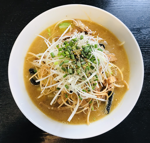 Read more古川方面に出張中に同僚2人とランチにて利用させていただきました。ラーメン王子グランプリ2022県北エリア3位との事で気になっていたお店です。 店舗裏手にある駐車場は周辺のアパートの駐車場との境が分かりづらいのですが、お店側は駐車可能な様です。 平日の13:30頃の入店でしたが、店内は満席、次の順番との事で、店内のベンチで順番待ちとなりました。我々が入店後も、続々と来店される方がいて、店内に入りきれない順番待ちの方達は用紙に記入して車で待ってて下さいとお店の方が話されておりました。 店内は厨房前のカウンターに4席、その反対の窓側にもカウンターがあり6席ほどです。順番待ちの間にオーダーしたネギ味噌らーめんは店内に「人気No.1」と表示されていました。 着席後、10分ほどで運ばれてきたラーメンは炒め野菜の上に白髪ねぎがこんもりとのっています。スープはコクがあり、やはり味噌ラーメンはこうじゃないとと思わせるものです。また、炒め野菜に掛かっている胡椒が結構効いてますね。角切りにした叉焼もゴロゴロ入っているので、普通盛りでも充分なボリュームです。流石県北ランキング上位のお店だけあり、総じて満足する一杯でした。 先客の方達はチャーシュー丼などを一緒にオーダーしている方も多かったですね。 次回、訪問する際は「まぜそば」も...