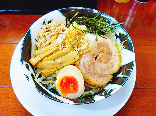 Read more午後に行きました! 味噌ラーメンが食べたかったんですけど残念ながらスープが完売で、まぜそば系しか出せないとのこと。 まぜそばはあまり食べないので抵抗がありましたが、辛くないまぜそばを頼んでみました。お会計は先に済ませる方式でした。追い飯ともやしを付けるか聞かれましたが、今回はまぜそばだけで。 太麺でめちゃくちゃ濃厚なタレが絡んで想像以上に美味しかったです! これは太麺の味噌ラーメンも食べたかった! 味噌ラーメンが本命なので今回は星4で。 店主さんも丁寧で気持ちが良かったです。