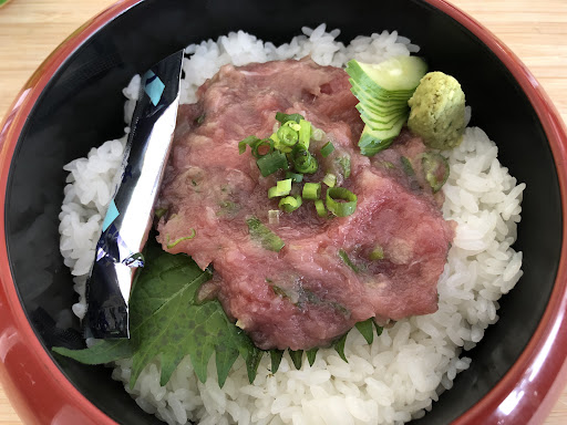 米は硬めで粒だっており、酢と砂糖は主張してこない。 ネギトロは原型をとどめていないくらい叩かれており、食感は皆無。もう少し荒くても良いかな。鮪の味はまずまず。食後、丼の底に油が溜まっているのが気になる。鮪の油なのか。 菊が乗っていたり、いなかったり。鮪の赤色が鮮明な時もあれば、くすんでいて確実に痛んでるだろ、という時もあるので品質は安定しない印象。 丼の中、新鮮であろうネギトロの横に小袋の醤油を直置きするのはすごいなと思う。