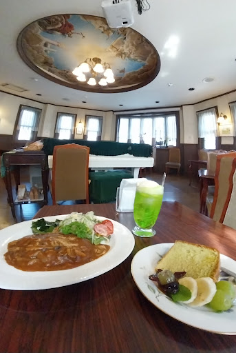 Read moreランチ利用です。個性的な雰囲気あるお店です。ダイニングルームは中央にピアノが置かれてその周りにテーブル席があります。 ランチの定番は生姜焼き、ビーフカレー、煮込みハンバーグですが他にもいろんなメニューがありました。ご飯の量が凄く多かったので半分にしてもらいました笑 あと、デザートをサービスで頂いたので別料金でコーヒーを注...