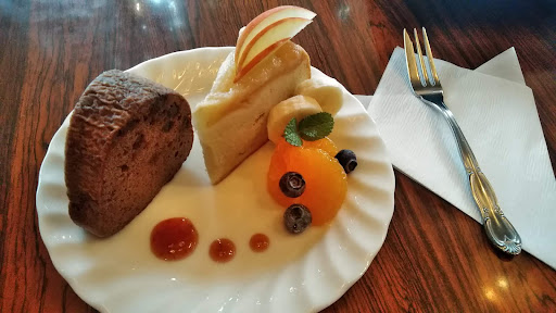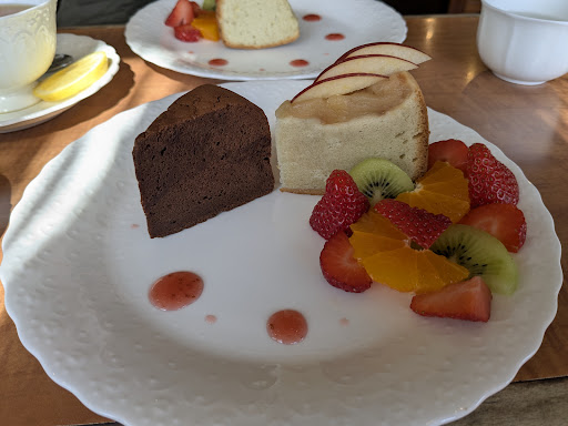 Read more昭和のレトロな雰囲気が残る喫茶店です。 アンティーク調のカウンターやテーブル、ランプシェードがとても素敵です。 ケーキセットは、3種類のケーキから1つを選ぶか、2種類をハーフにすることができます。 訪問した日は、チョコチップケーキとりんごのケーキのハーフを注文。 チョコチップケーキは、ガトーショコラのような濃厚なチョコの味わい。 りんごのケーキは、地...