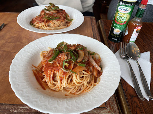 パフェだけ食べるつもりが、団体様が居たこともあり、お目当てのパフェは材料を切らしているという事で、食べられませんでした。ちなみに、パフェの提供時間はランチタイムが終わってからになるようです。食事をしてパフェまで食べたい方は、時間帯を考えて行かれた方が良いです。全体的に料金は割高です。ナポリタンをいただきましたが、ヘルシーな材料を使っているだけあって、シンプルな味わいです。好みが分かれる感じですね。コーヒーまで付けるとお高くつくのでやめました。口コミがかなり高評価でしたので、期待を膨らませて行かせていただきましたが、スタッフさんの人柄とレトロな雰囲気、体に優しいお料理をお求めの方には、とても良い喫茶店だと思います。私はたっぷりケチャップが麺に絡みつく、真っ赤な濃いめのナポリタンが好きなので、こちらのパスタは、さっぱりした...