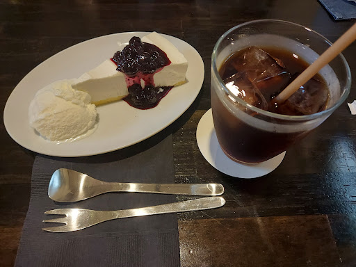 Read more友人二人で、午後のコーヒータイムにお邪魔しました。ドライフラワーや観葉植物をうまく飾ってあり、証明が居心地を良くする感じで、とても落ち着きました。ケーキには、バナナケーキと本日のケーキ、レアチーズケーキを食べました😋アイスと生クリームが添えてあり、レアチーズケーキには、たっぷりのブルーベリーが乗っています。とても美味しかったです✨コーヒーも私の口に合っていてとて...