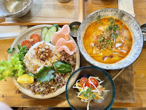 I highly suggest either reserving ahead of time or getting here as soon as it opens because we got here at around 12:30 and had to wait over an hour to be seated. I later found out that it wasn't the fault of the restaurant, but rather the customers. When we finally got seated the food came out at a reasonable time, however the couple next to us who probably had been there for an hour had already finished their meal and were just looking at their phones instead of vacating their seat and letting the next batch of customers in. This was super annoying since the interior isn't exactly huge to begin with. The food itself is quite delicious, the restaurant serves a range of ethic dishes from countries such as Vietnam, Thailand and so on. I got the Mexican Plate which was the special for that week. It came with a salad and soup. It cost around 1400 yen and was very filling. Highly recommended if you're in the neighbourhood, just be careful...