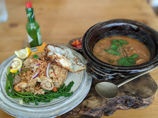 Fresh Salads and Drinks and Desserts are great, and their Meat dishes are Fine too, But their soup- curry dishes would be better, if it would be more creamier. For us …we thought , the coconuts milk needs more...