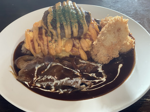 Read more水沢&北上の観光の途中、ランチで寄りました。お店の前に駐車場があり、ほぼ満車…周辺のマダム達が車で寄り合ってのランチなのか、席の埋まり具合と駐車場の使用率は比例してないみたいです。 小さめなお店かなと思ったけど…中は意外と広め。4人席だけど、席数を増やせそうな大きめの木の素敵なテーブル席が4席。漫画などの本棚があるお一人様スペースがあり。一人席はカウンターでなくテーブル席で、一人でもゆっくりと食事が出来る感じが凄く良かったです。 料理は、オムライスが自分の好みでカスタマイズ出来るのが楽しくて…私は、玉子をトロトロ、ダブルソースでホワイトソース&デミグラスソース、チキンカツを追加して、ケチャップ名入れをして貰いました。他には、誕生日花火やバジルソース、ハンバーグ等。試してみたい組み合わせが沢山ありました。 友人と悩みながら、話しながら時間がかかっても、店員さんが快く待ってくれたので、有難かったです。 他の数量限定の日替わりメニューやアップルパイ等のカフェメニューも魅力的でした。 大好きなキッシュは、外の自販機でランダム購入か、要予約購入らしいので、店内では食べれず…残念でしたが、自販機で購入したアップルパイとキッシュは、温めず自然解凍でも...