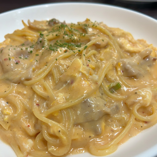 ホワイトソースの白金豚と玉子とキムチのパスタ950円をオーダー。パスタのアルデンテ具合が丁度よく小気味よい歯ごたえ。ホワイトソースにキムチが混ざっているのですが、どちらかというと、中途半端な印象。