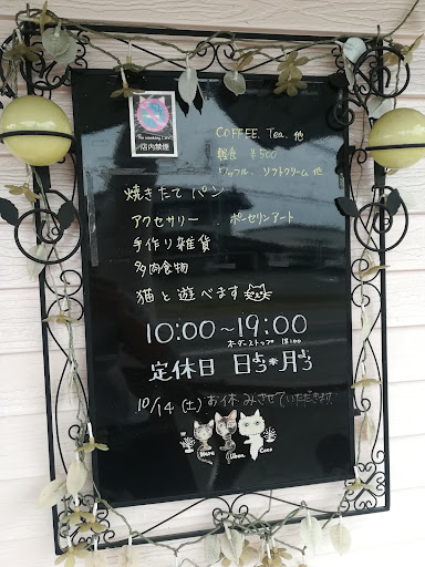 Read moreガラス張りの部屋を通してかわいい猫が拝めるカフェ。内装もおしゃれです。 ランチは500円~。カレーうどん、焼きそばなどがあり、気軽に楽しめます。 コーヒー、紅茶、スイーツの他に手作りパンが買えます。パンだけ買うこともできます。 店内にはアクセサリーや手作りグッズなども豊富です。 薮...