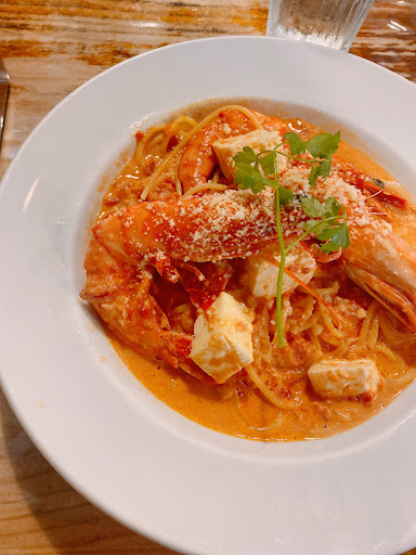 ホームセンターに併設されているパスタ屋と侮ることなかれ、英国風の雰囲気が漂うおしゃれなカフェです。店内は広々としており、柔らかな光に包まれた空間は、買い物を終えて一息つくのにピッタリです。