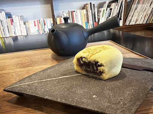 小さめの急須で湯呑みに注ぎ、自分のペースでお茶を楽しめるスタイルで、ほのぼのタイムのスタート。 急須の中のお湯が無くなるたびに、一緒に持ってきてくださったポットから注ぎ足し、合わせて3煎楽しませていただけました。 煎を重ねるごとに変わる香りと風味、そして煎茶の渋み、鼻から抜ける余韻、それらすべてが愉しい。そして和菓子も、こし餡のしっかり甘くも、あとに残らないサラッとした舌触りがなんとも極楽美味。また、生地も風味豊かでモチっとしていて楽しく食べられました。