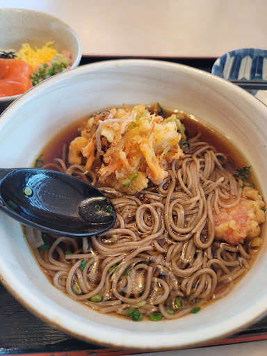 Read more美味しくはない。 注文の仕方がわかりずらい。高い金額設定の割に水はセルフだし、メニューはタブレットで、量もすくなく、刺身は生臭い。 蕎麦広告してるので、蕎麦とミニ海鮮丼を頼みましたが、ミニ海鮮丼の温度がぬるすぎて、蕎麦とあいません。量は写真にあげた通り、少ないし、少ないが故に生臭さがご飯いっぱいに広がり、500円以上の価値と量がない。 和食レストランのイメージを全く、壊してくるクオリティーで残念でした。 紙ナプキンはぎゅうぎゅうに押し積めてあり、高級感を損ない、蕎麦にパプリカの天ぷらを合わせるミラクルさ。かき揚げ蕎麦なのに、天ぷらが小さく、蕎麦がメイン、いや汁がメインになってしまう。蕎麦は絡まり、一緒に上がって来てしまう食べずらさにも、値段に文句を言いたくなる原因となりました。かき揚げは、竹輪みたいなのが中の量を占めてました。味わいもない。 値段値段言って申し訳ありませんが、味とサービスの不釣合にそういってしまいました。 こんなもんなんでしょうか...