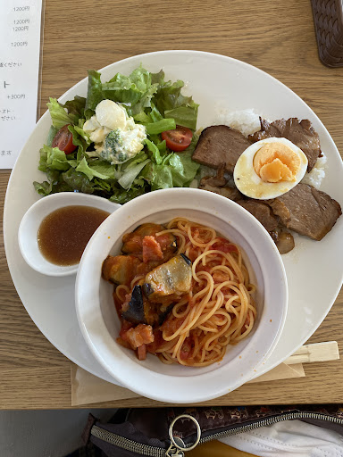 Read moreご近所OPENですがなかなかタイミング合わず初訪問。 店内、白を基調としたシンプルで落ち着く空間でした。 ランチメニューのパスタとサラダ・ドリンク・デザートセット@1400をオーダー。 パスタは和風きのことベーコン、あさりボンゴレを選択。デザートはシフォンケーキとハニートーストと、二人でそれぞれを。 サラダはセット品とは思えない色とりどりのものでした。 パスタもタイミング良く提供されました。 スープ加減もよく、どちらも美味しく頂きました。 デザートのシフォンケーキは専門店からの提供とのことでこちらも美味。 ランチはご飯版もあり、次は試してみたいです。 オープンしたてですので穴場かと。 公園が近くにあり散歩途中のコーヒータイムもいいかも...