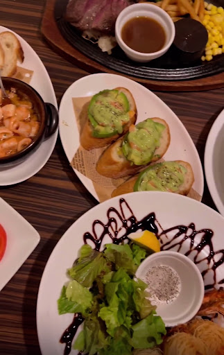 I ordered -raw octopus with tomatoes -Angle shrimp -squid ajillo -avocado bruschetta -cut steak wagyu -bolognese linguine -hot plate bread with icecream (forgot the name)