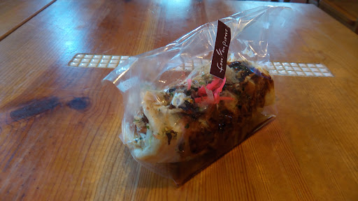 Read moreずっと行きたくてなかなか入れなかったフールアンピエールさんに、連休最終日に初めてお邪魔しました。 どうやって入るの?と思っていたのですが、裏に駐車スペースがありました。 憧れのパンビュッフェはコロナ後からやっておらず(再開してくれるといいなぁ)テーブル席はフリースペースになっていました。 おしぼりや紙コップ、フルーツの入ったお水などがサービスされていました。 お会計時にコーヒーなど飲み物も買えますので、ここで買ったパンを食べたりもできます。 パンを選ぶ時も色々あって迷いましたが、お昼用にお好み焼き風のロール(生地がモチモチで美味しかった)とヤンニョムチキン(ピリ辛で美味しかったけどちょっと食べにくかった)のピタサンドをチョイス。 持ち帰る分は、ベーコンエピなど何種類かと、あと30円で食パンの耳(斤の両端の切り落としの詰め合わせ)があったので色々試してみたくてそれも買ってみたり…