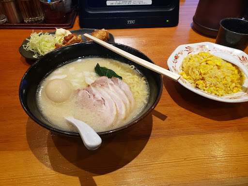 "Because it is located right next to a Kombini and a Pachinko, this Lamen has plenty of parking spaces, the service is great, the menu is all digitized and the order is made through the Tablet available on the table, there is an area for the customer take the topping as they wish, Lamem tastes strong, the texture of the noodle can be chosen when ordering, there are options for combination dishes like Kaarage and Tyahan, Kaarage is crispy on the outside and soft and juicy on the inside, however, Tyahan is basically rice with scrambled eggs. The amount of noodles in the Ramen is impressive and it tastes really good! I will be back more often!"