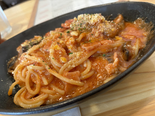 Read moreとても本格的なオープンキッチンのお店です。 パスタは食べ進めていくごとに味が変わり、とても美味しいです。セットのクラムチャウダーも濃厚な味わいでとても美味しいです。サラダはセット用として暫定的な味わいですがドレッシングはとても良かったです。コーヒーは酸味が控えめのコク増しタイプでとても美味しかったです。量的に少なめに見えるためセットの値段をもっと突き抜けて高くしてもデザート付きやサラダもハーブ系やパプリカなど使ったワンランクアップしたセット感が出せたら、立地条件の不利が逆に限定人数のみ入店できるお店感に代わるかもしれません。メインの味は美味しい。市内の方は味見にどうぞ。私もリピートしたいお店になりました...