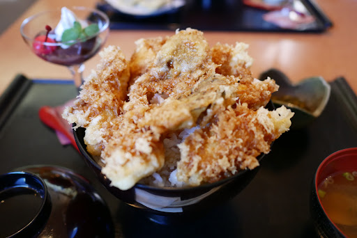 食べたものは茶碗蒸しデザートまで付いた穴子2尾がはみ出たアナゴ天丼セット1,240円、味も量も変わらず女将さんの接客も相変わらず素晴らしかったです。特にデカ盛りではないけど油が自身の胃にキツかったです。