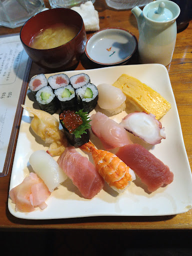 Read more久しぶりに行きました。金曜日の12:30座りましたが、カウンターには地元のご年輩の方が声大きくお話されていたので座敷を利用させていただきました。値上げをしていてランチ握り1.5が税込1700円になっていました。本日は刺身定食にしましたが1200円。美味しかったです。(以上2025年9月追記) 日曜日の12時直ぐ座れました。今回はミックスフライ定食にしてみましたがアジ&エビにお刺身、食後にはコーヒーが付いて1000円。値上げしないでいる個人経営のお店に頑張ってほしいです!(以上2025年4月追記) 久しぶりに行きましたが変わらず趣があって良いですね。前回と同じく1.5握りにしようかと注文したらシャリがなくなったようで急遽刺身定食にしました。種類は少なかったですが中トロやホタテが盛られていて良かったです。(以上2024年12月追記) 初めて行きました。三人だったので座敷で食事。昼過ぎでしたが数組の来店あり。カウンターもあり昔ながらの店舗です。老夫婦で運営しているみたいなので急いでいる人には不向きもしれません。写真はランチの1.5人前です。お味...