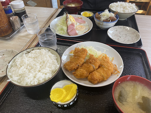 Read moreお盆休み真っ只中で軒並み臨時休業の中検索して営業されていて初訪問しました♪😌 駐車場は向かって右側に大きな🅿️あります☺️ 入った時は3組しか居なかったけど後からゾクゾクと入店で満席🈵常連さんは自分でオーダーを記入して店主さんに渡しています🧐 メチャクチャ元気の良いお父さんが注文を聞いて大声で厨房のお母さん達に伝達😬これが一つの名物の様な感じでした、威勢やテンポ、テキパキと要領良く提供までの時間がスピード配膳です♡刺身類は2分くらい、揚げ物でも5分弱でモツ煮が柔らかくてコクあり美味しい🤤アジフライ、ハムカツ、マグロやイカ刺身はどれも美味かった😋 工場目の前で工員や職人さんがほとんどで回転が凄く早くて夫婦ではちょっと落ち着かなかったですが仕事人の男性の方々は安くて早くて旨い店ですね🤩😁ご主人は値段を全部覚えていて会計時の値段も一発でした凄い😉🤣 早朝5時より美味しい定食が食べ...