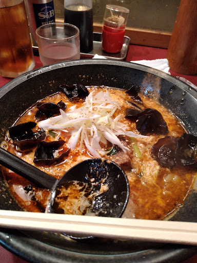 Read more深夜にラーメンが食べたくなったので来店。徒歩数分だけどオープンしてからかなり時間が経っているにもかかわらず来店するのは初めてでした。それもそのはず、昼間は営業していないので夜じゃないとラーメンは食べられないんです。中年太りでダイエット中の身としてはかなりハードルが高い!(摂取カロリー的な意味で)しかし海外旅行から帰ったばかりで身体がお出汁の味(具体的にはラーメン)を欲しているため断腸の思い?で来店したのでした。 店内は10時過ぎにもかかわらず2組ばかりのお客さんがいました。飛行機の中でとにかくラーメンを食べることしか考えていなかったのでメニューを見るなり塩ラーメン大盛りを注文。あとで気がついたんですが細麺も選べたんですね。店主一人で切り盛りしているせいか非常に忙しそうでした。10分くらいして小さめの洗面器のようなおおきなドンブリでラーメンが来ました。麺を掬ってみると細めのうどんくらいある極太麺が!時間がかかったのはこの極太麺を茹でているためだったんですね。かみごたえ抜群のモチモチ麺が豚骨スープに絡みます。美味い!チャーシューもホロホロと箸で切れるような柔らかさでとても美味でした。失敗した…チャーシューもトッピングでつけるべきだった。ダイエット中だからここは我慢ですが今日くらいは欲望に忠実に行動しても許されたでしょう。それくらい罪深い美味しさでした。 写真を撮っていると店主が「写真を撮るような上等なものじゃないですよ」と気さくに話しかけてくれました。いや、十分美味そうで写真として残す価値がありますよ!実際に美味しかったです。ただ、ニンニクや紅生姜などの調味料が充実していたらもっと味の広がりを楽しめると思います。 帰り道、徒歩数分にこんな美味しいラーメン屋があるなんて幸せ者だなあと考えつつダイエットの最大の障害になるなあとも...