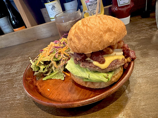 Read more2025年1月中旬、週末のランチタイムに初訪問。駐車場は空きは少なかったけど席は少し空いていた様子。入り口からおしゃれだなーと思っていたけど店内もとてもおしゃれだった。 待機椅子が少しあって記名表もあった。待たずに席に案内された。 カウンター席、壁が高く個室っぽいテーブル席があった。膝掛けがあって感動!暖房が効いていても足もとが寒いことが多いのでとてもありがたかったです。 バーガー店だとバーガー以外の食事が無い印象でしたが、こちらのお店はバーガー以外にもメニューが豊富だと思いました。 ペイジバーガーをセットで注文。お肉、ソースの味がしっかりするけどトマトでさっぱりする感じで総合的に美味しい!そして自家製オーロラソース美味しい。さらには自家製バンズがめちゃめちゃ美味しかった。 連れの頼んだクワトロチーズバーガーはチーズが伸びてそちらも美味しそうだった。 セットのドリンク、連れの注文ミスかわかりませんが先に出てきた。連れ曰くドリンクの提供どきを選べなかったと。ホットコーヒーは食後に飲みたいですね。注文はQRを読み込んでスマホから。 ポテトは冷たいまでいかないけどあまり暖かくなかった。 バーガー美味しすぎたからまた違うバーガーもたべたい!