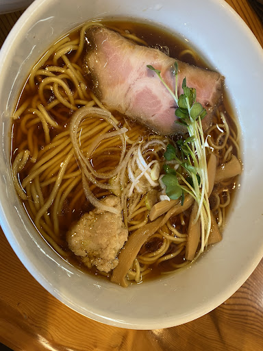 注文は基本のラーメン。色は濃いめですね。 色の通りスープは、濃いです。 濃いと言うよりしょうゆ辛い。 飲み干すのは厳しいかなって感じ。 ただ食べ終わりの頃に一瞬「柚子の香り」 あれ?気のせい?と思っていると、 柚子の皮が刻まれたのが1切れいました。 もう少し入れると、サッパリでいいかも?