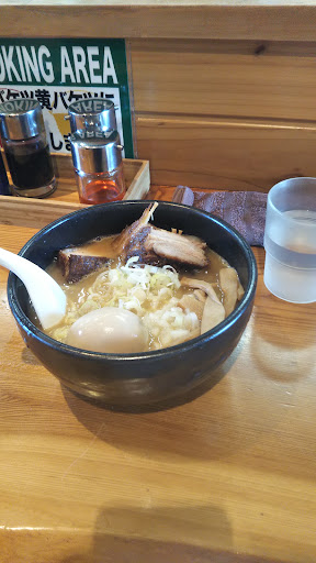 店内に入った右手で食券を購入しますが、 12時前にも関わらず、もう待ちが。 スタッフさんは。。。店主お一人。。。 おぅ。。。これは時間がかかるかな? せっかく来たし、仕方ないと思い待ってると、 手際良く空いた器を片付け、すぐに案内。 先待ちの別客さんと5人同時に着席し、 すぐに調理開始。 結局自分は入店から10分位での提供。 いい動きしてますね。