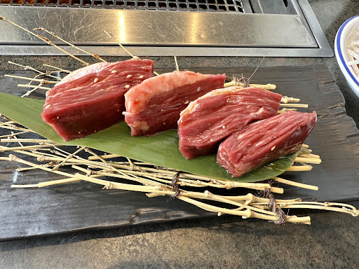 太田桐生ICを降りたのがちょうど昼時。確かカルビラーメンがおいしかったので食べていこうと入りました。駐車場もお店も広いです。 二人用の小さな座敷な案内してもらい、タブレットでメニューを見ると「ランチ」の文字がない。残念、日曜祝日はランチなしでした。 タレとトングを置いて火もつけくれちゃったので、もうラーメンのことは忘れましょう。 なんとなく目に入った厚切り上ハラミ1,980円をタップ。ライスのコーナーにカルビスープセットがありますね。これなら当初のカルビラーメン欲も救える。合計2,700円ちょっとの少し豪華なランチになってしまいました。 ニンニク・レモン汁・コチュジャン・塩は全て個包装で置いてあります。コロナのためかバカッターのせいか。小さななゴミ箱もあるのがいいですね。 出てきた厚切り上ハラミを見てビックリ。タテだかヨコだかわからんレベルの極厚でした。4切れだけどグラム数でいったらすごそうですね。 よく焼き気味にやいてかぶりつくと、まさしくニク。赤身肉らしい旨味がニク食ってる感満載ですが、ちょっと噛み切るのが大変。ハサミがあってもよかったかも? 付けて大正解がカルビスープ。真っ赤でいかにも辛そうですがそれほどでもなく、旨味もアブラもたっぷりです。これはご飯をドボンせざるを得ない。大盛りにすべきだった…! ちょっと高くついちゃったけど肉とスープでお腹いっぱい、良いお昼ご飯でした。 とにかくカルビスープかカルビラーメンかカルビクッパを食べるべきお店ですね。次は平...