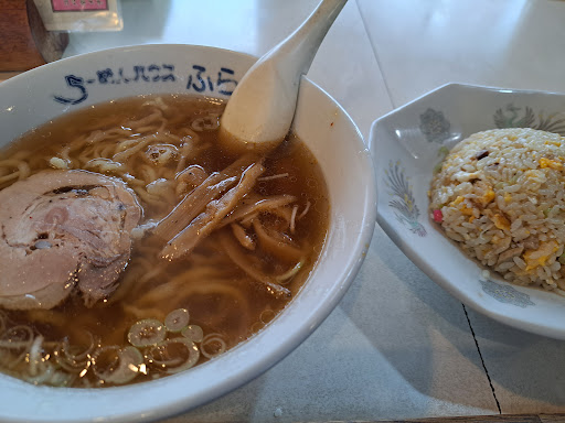 醤油ラーメンと半チャーハンを注文。すると、鍋を振る音と炒められた油のいい匂いが漂って来ます😋