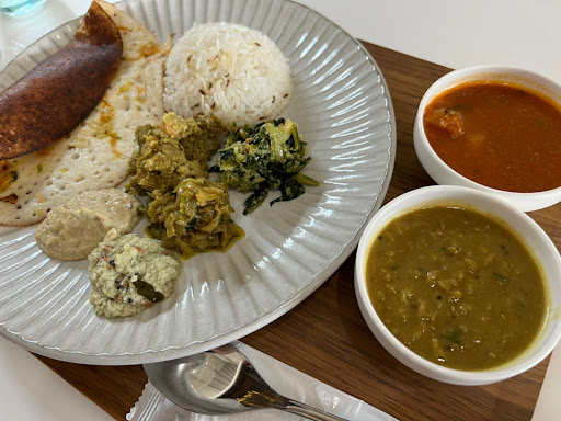 無発酵coconut dosaやbasmati、daal等 他の料理に軽やかなクリーミーさが 上手く調和していてびっくり。