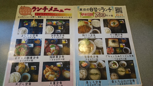 Read more平日の午後1時頃入店。 駐車場は、店の周りに10台以上あります。 海鮮重定食税込1,100円を注文。 約3分で、着丼。 海鮮丼は、マグロ、サーモン、カツオ、ハマチ、シメサバ、イカ、ホタルイカ、マグロのタタキなど色々乗っています。 刺身は厚く切っていて、ハマチやサーモンは脂が乗っており、美味しかったです。 ご飯は、冷ました普通のご飯でした。 味噌汁は、豚汁が付くみたいですね。 食後にコーヒーが付いて、この値段なら、お得だと思います。 日替わりランチは税抜き700円なので、...