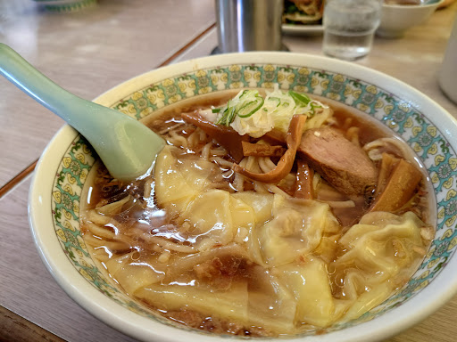 「ワンタンメン」は澄んだスープにコクがあってクセになりそう。麺は太めのちょっとちぢれた感じで、ツルッ、モチッとして良い感じでした。ワンタンはトゥルンっとのどごしがよくていくらでも食べれる!