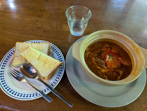 Read moreのぼり旗、メニューからしてピザがメインだと思う しかしボルシチがあり、珍しいので注文 ビーツを使ったものではなかったが、トマトの酸味が効いていて美味しかった 王滝村の食事処は少ない上、他の蕎麦屋、カレー屋は休みのことが多い中、ここはやっていることがある ただし、おばあちゃん1人でやっているのか時間がかかるので、急いでいるときは注意 あと...