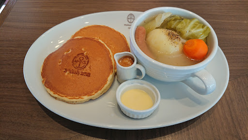 パンケーキにはキャラメルソースが添えてあり、甘過ぎず最後までパクパク頂いてきました!! ポトフの様なスープも、じゃがいもが1つ丸ごと入っていて、優しいお味でした!! チーズケーキは(温・冷)選択出来て、温かい方を選択!! 弾力も有りますが、フォークを入れた瞬間、ふわふわで重すぎず、サラッと頂けるチーズケーキです(...