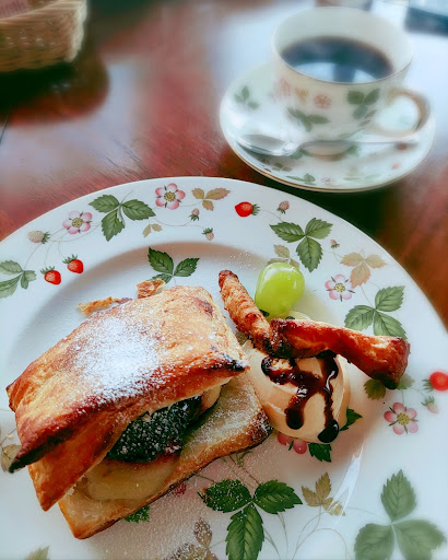 Read more口コミ高評価を見て行ってきました。天狗山ロープウェイ駐車場からすぐ近くの高台にあるお店。平日の14時過ぎに到着。大きな窓が印象的な店内、高台から海も見渡せるという景観バッチリのハズなのですが、、窓の結露がひどい( ・ั﹏・ั)!!お店の方がザーッと拭いてくれたのですが、よく見えず景色は楽しめなかった(´ . .̫ . `)デザートメニューはアップルパイと葡萄のケーキの2種のみ。アップルパイは焼き立てで美味しかったのですが、連れの葡萄のケーキはスポンジがパサパサしていて好みではなかったそう。 うーん(゜-゜)色々...
