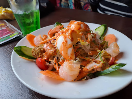 Read moreMelon soda was a bit sweet for 280 yen. Kamigare salad had warm prawns that were likely frozen before. Cold tikka chicken and lettuce, boiled eggs, sliced carrot and cucumber, and Cherry tomatoes. Not sure if I will come back at all unless to see the view in summer. English in the...
