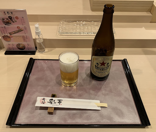 先ずは何を飲みましょうか?軽く瓶ビールにしましょう。 サッポロ赤ラベルがありますね。これにしましょう。