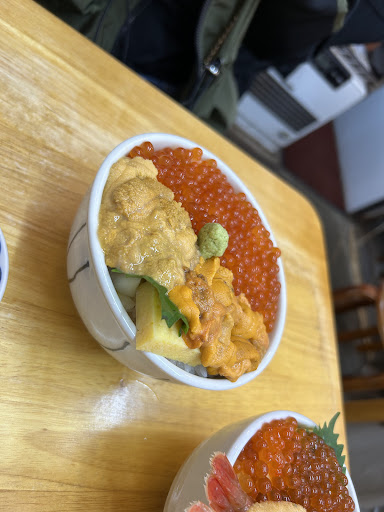 We got the mix uni and salmon roe rice and the 4 sashimi choices rice, and a small scallop sashimi appetizer. The mix uni (Mafuin and purple) and roe rice was somewhat of a disappointment. The freshness was there but quantity was really quite small for the price we paid (7700 yen). By the way, we were also confused why we were the same amount as a full mafuin uni plus roe rice. That was a bit tricky as the pricing was based on “market price” and h clear. The 4 flavor sashimi rice is a more economical choice and slightly better worth for money, though quantity was also a bit on the smaller side for around 3000 yen.
