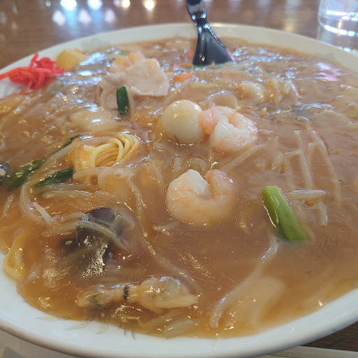Read moreあんかけ焼きそばが人気の店です。今回は炒飯と味噌ラーメンのセットをいただきました。醤油か塩ラーメンのセットだと900円、味噌だと+50円です。味噌ラーメンは初めて食べましたが、シンプルでコッテリとしたとても美味しいラーメン❗でも炒飯がお粗末、これ冷凍食品❓って思っちゃうほど味気なく物足りない感じでした。娘が食べたのはエビかにあんかけ炒飯、アッサリとした味で美味しかったです。店はご家族でされてるのか家庭的な居心地のよい雰囲気でした。店の前には大きなシーフードあんかけ焼きそばの看板がとても美味しそうで、一度食べてみたいと思っちゃいますね。次行く機会があれば頂いてみようと思います。駐車場も店の...