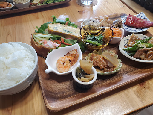 ランチプレートが人気な様子。 限定数が有る様なので、前もって予約して伺いました。 一軒家を改装された様な、お店の中は広くは有りませんが落ち着いた感じ。 かなり混んで居ましたが、皆さんゆっくりと食事を楽しんで居る様子。 食べ始めてから写真撮り忘れに気付いて、慌てて一枚。 沢山の小鉢小皿に料理が盛られて居て、目でも楽しい。どの料理も味がシッカリしていて味付け最高。 出来ればお酒のオツマミにしたい感じで、本当に美味しかったです。 見た目以上に満腹感も有り大満足出来ました。 スタッフも終始ニコニコと感じ良く、ママさんの気さくな人柄もとっても好感が持てました。 お昼は予約で行くのが間違い無いかもしれません。 是非またお邪魔させて頂きたいお店...