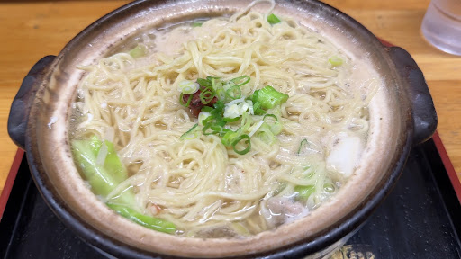 大豊町にあるラーメン店。国道23号線沿いのお店で、周辺にはあまり飲食店もないのですがここにありました。しかも外観からはあまり入りたくなる雰囲気ではなく(ごめんなさい)。口コミを信じて入店! そしたら店内は小綺麗な感じで一安心。女性が一人で切り盛りしているお店でホット一息です。 さて、店内はカウンターのみ。メニューを見て悩んだ結果、ここはやはり鍋焼きラーメン(1,200円)を一度は食べてみようということに。高知といえば鍋焼きラーメンですもんね! 待つことしばし。熱々のラーメンが登場。もう、かなりグツグツしていて大変な熱さです。恐る恐るスープをススッてみましたが見事に口の中をヤケドしました。皆さんも注意してください。ラーメンは見た感じ「具はあるのかな?」と思いましたが、実は鍋底にしっかりと入ってました。エビやらイカやら肉やら野菜やら結構な量です。麺は細ストレート麺。グツグツでしたが伸びている感じなかったので多加水麺なのかもしれませんね。スープは透き通っているんですが、思ったよりも味がしっかりしていてコクがあります...