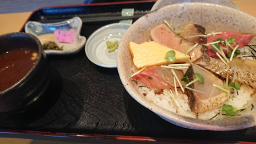 お料理ですが客人の料理(マグロのユッケ丼、ぜいたく丼)は問題ありませんでしたが、私がいただいた漁師丼の鰤と鰤が臭みがすごく少し食べて残しました。案の定、食事をして15分ほどでお腹がゴロゴロ言い出し2泊3日の道中で大変な目に遭いました。恐らく傷んだ食材を出されたのだと思います。セットの赤だしも苦味が多く全員が苦手な味でした。