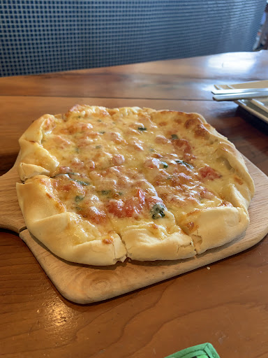 お料理は 海の幸サラダとパスタとピザを注文。 厨房は忙しそうでしたが料理は早く出てきました。 ピザも小さめ、パスタも少なめで男性の方は足りないと思います。 お値段も少しお高めだなと感じましたが 魚介類も味付けも美味しかったです。 琵琶湖付近の少ない飲食店ですし高めなのは仕方がないかなと思いました。