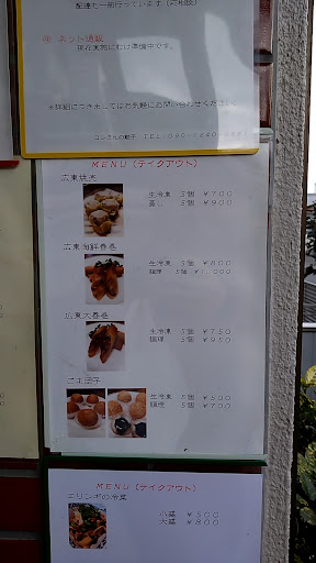 Read moreコンさんの餃子、ちまきと餃子をいただきました。 味はとても美味しいです。 ただ、 家の前の道路を駐車場にしておられます。 自宅の駐車場はお店の看板や机(?)などを置かれていて自ら使えなくしておられます。 コンさんの餃子の車を避ける歩行者は道路の真ん中まで膨らむため危ないです。 特に子供などはドキッとします。