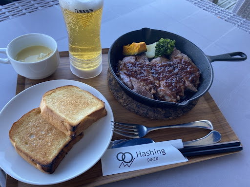 Overall a good diner on Lake Biwa. The food is reasonably priced. I had the 350g steak for ¥1980+tax and the bread/soup set for an additional ¥350. It was a good medium/medium-rare steak. Beer was a bit expensive in my opinion but the Tornado technology cup was a novel idea (I prefer my beer with little to no head but 🤷♂️).
