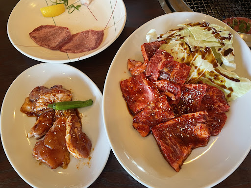 Read moreオシャレな器に小さなお肉をチョコンと綺麗に盛り付けてソコソコの値段を取る焼肉屋がほとんどですが、ここは昔ながらの大衆焼肉屋という感じなので、コスパは良いと思います。 焼肉も美味しいですが韓国料理が美味しいです。 ここの韓国風焼きうどんがめちゃくちゃ大好きです。 メニューにもよりますが辛口や激辛が選べるのでいつも激辛にしてもらってます。 建物は外観からも独特の良い雰囲気で内装も良いです。 接客は、学生さんっぽい若い子は人によってムラがありますが、姐御さんは良くも悪くも安定してます。 デメリットといえば、一階が駐車場で二階?が店舗なのですが、エレベーターが無く階段を上がらないと店舗に行けない事くらいです。